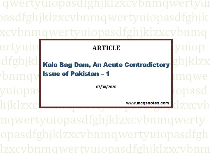 Kalabagh Dam, An Acute Contradictory Issue of Pakistan - 1